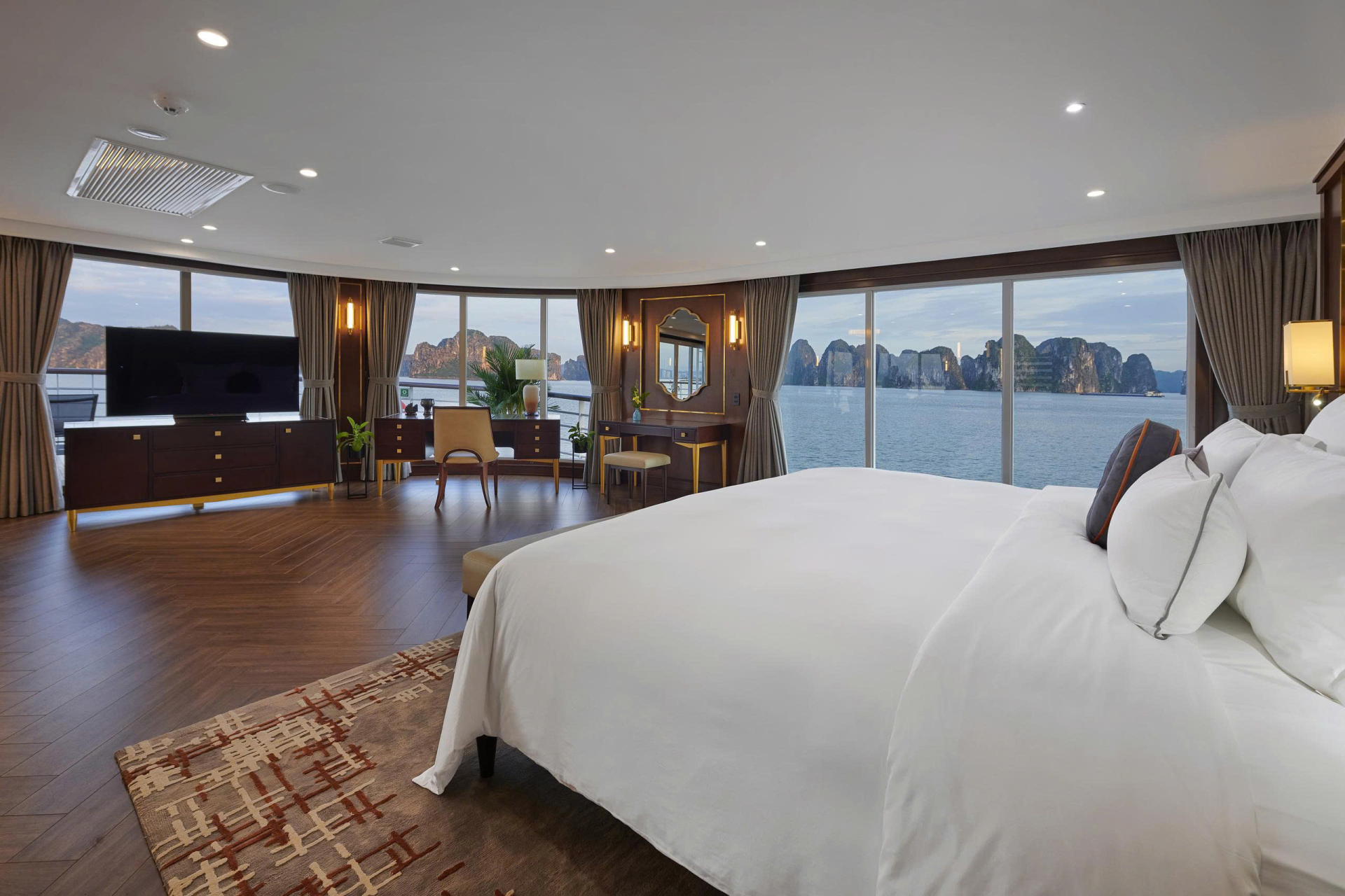 5.Chương trình trên tàu có thể thay đổi theo thời tiết trên vịnh Hạ Long. Việc hoãn huỷ chuyến đi do điều kiện thời tiết sẽ được chỉ định trực tiếp bởi Ban quản lý Vịnh