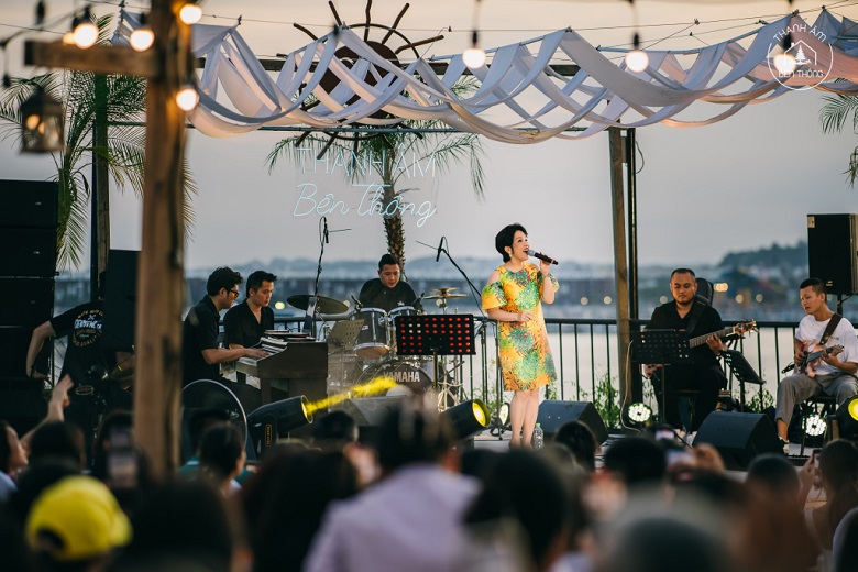 Diva Mỹ Linh hát trong một mini show bên bờ Vịnh Hạ Long. Ảnh: ĐVCC