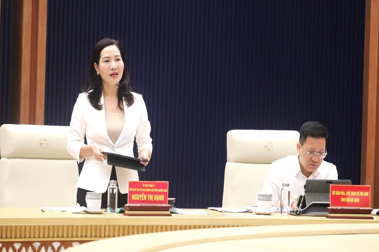 Phó Chủ tịch UBND tỉnh Nguyễn Thị Hạnh phát biểu ý kiến về hợp tác phát triển du lịch giữa hai địa phương.